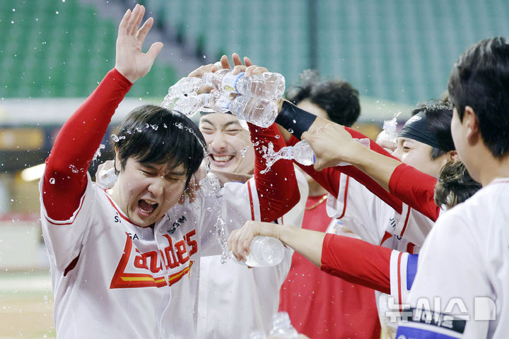 野球:SSG崔廷、500本塁打達成で「手荒い祝福」 /仁川(4/10)
