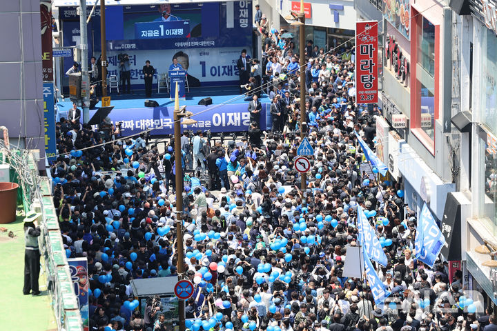 釜山・西面を訪れた李在明・大統領選候補(3/9)