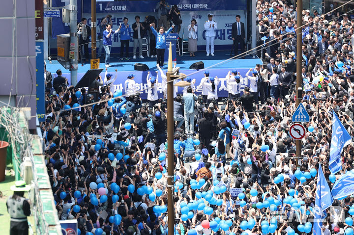 釜山・西面を訪れた李在明・大統領選候補(5/9)