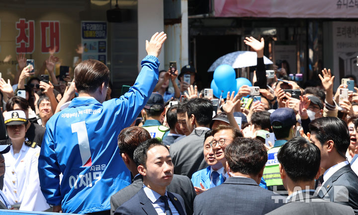 釜山・西面を訪れた李在明・大統領選候補(7/9)