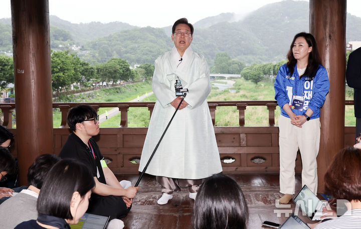 韓服を着て全州市民にあいさつする李在明候補(9/10)