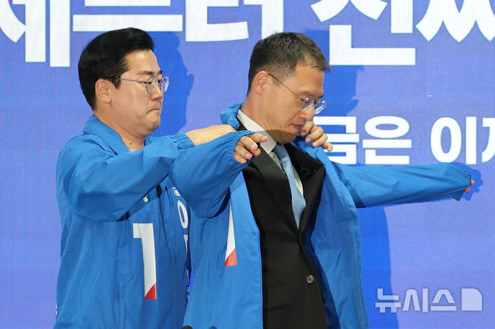 共に民主党の選挙運動ジャンパー着る金相旭議員 /ソウル(2/9)