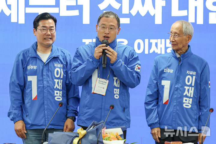 共に民主党の選挙運動ジャンパー着る金相旭議員 /ソウル(3/9)