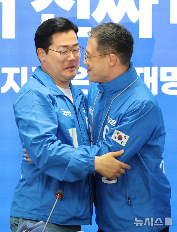 共に民主党の選挙運動ジャンパー着る金相旭議員 /ソウル(6/9)