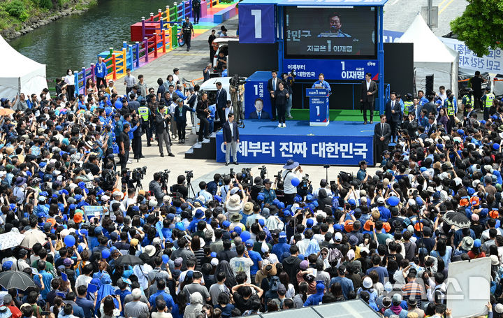 俳優パク・ヒョククォンと一緒にあいさつする李在明候補(5/10)
