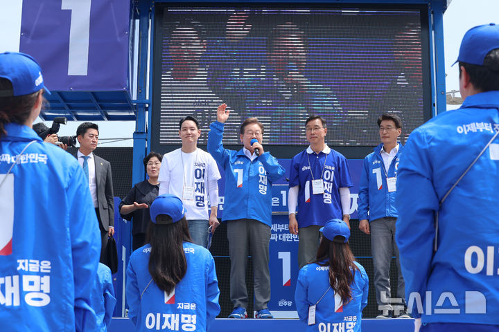 俳優パク・ヒョククォンと一緒にあいさつする李在明候補(10/10)