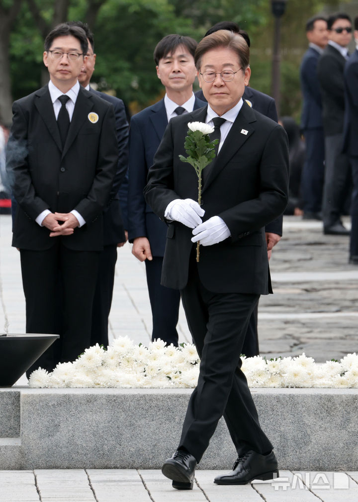 盧武鉉・元大統領の墓参りをする李在明候補(4/10)