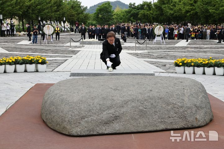 盧武鉉・元大統領の墓参りをする李在明候補(6/10)