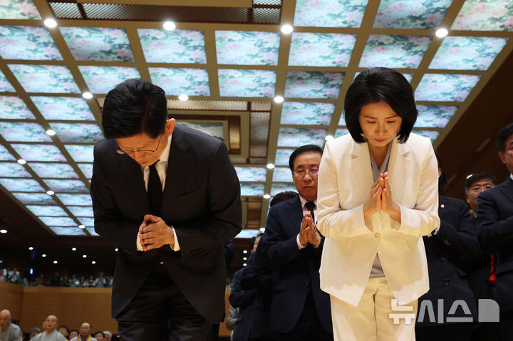 上月円覚大祖師の51周忌法要に参列した金文洙候補と李在明候補夫人(5/7)