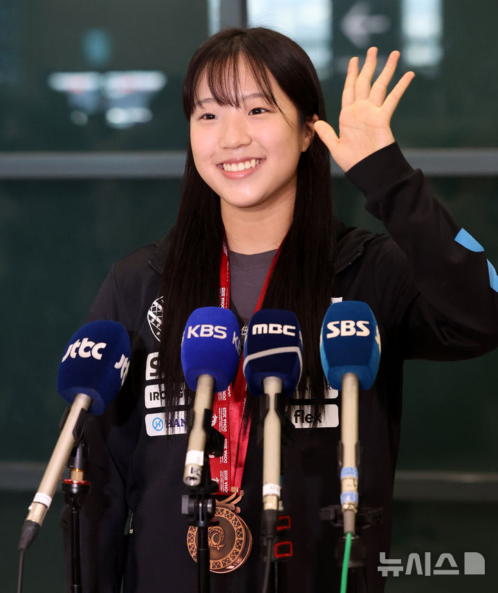 メダル2個獲得して帰国した申裕斌=世界卓球2025(6/11)