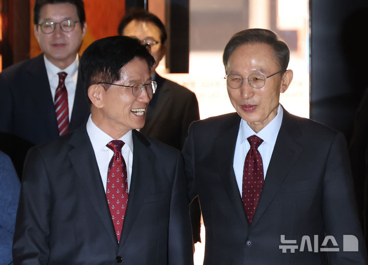 昼食会合を開いた金文洙候補と李明博・元大統領(3/14)