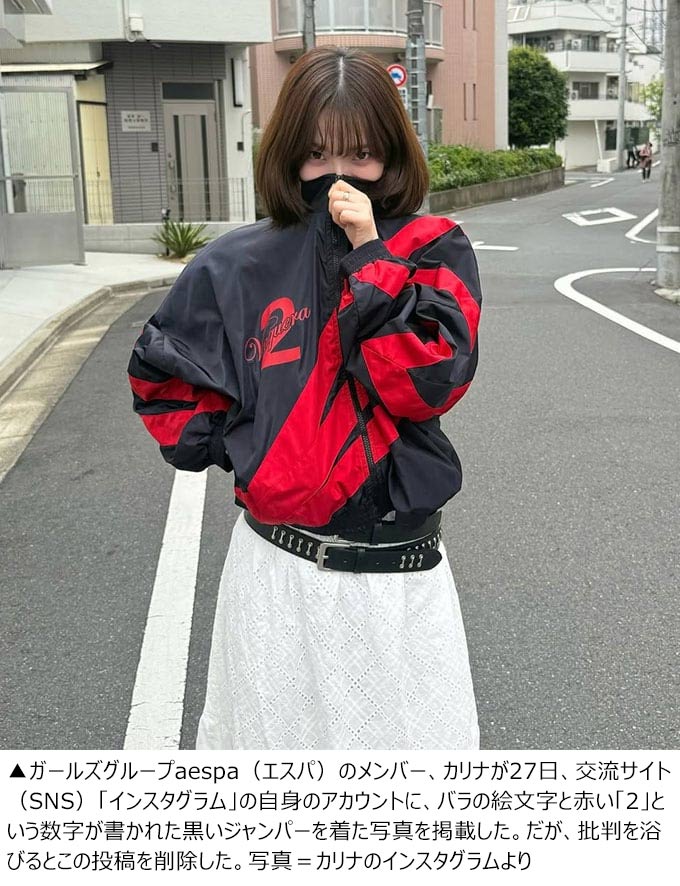 胸に赤い「2」 数字ロゴ入りジャンパー着用写真を投稿したaespaカリナ、批判受け削除 韓国大統領選(2/2)