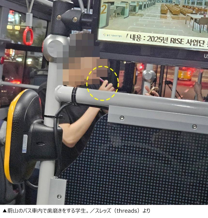周りの乗客に注意されても完全無視、バス車内で歯磨きを続ける男子学生に批判殺到 /蔚山(2/2)