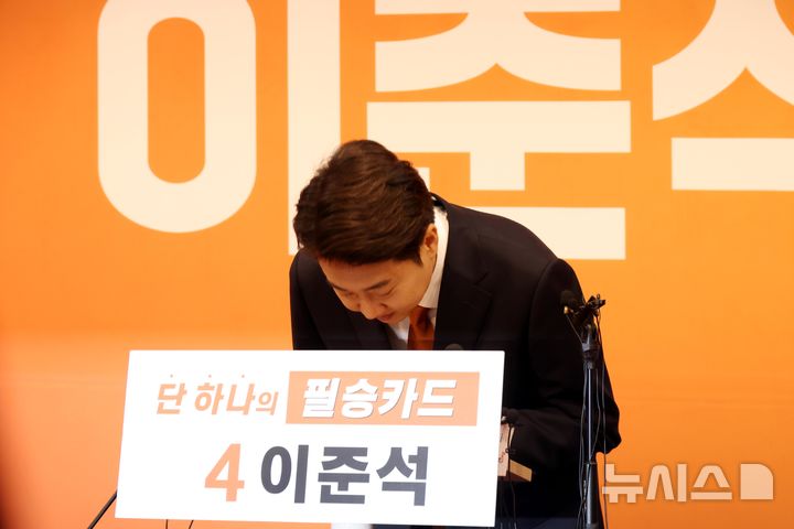 緊急記者会見をする改革新党・李俊錫候補=第21代韓国大統領選挙(7/11)