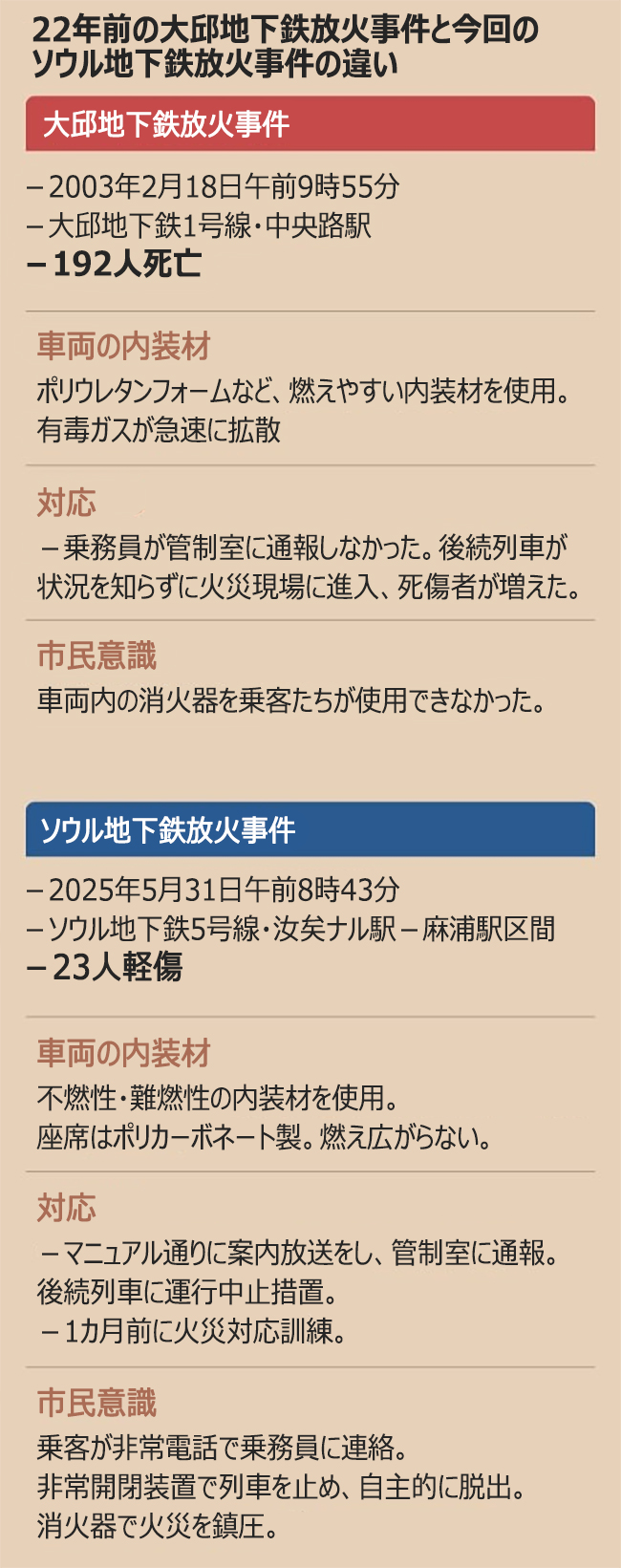 惨事を政治利用せずに基本を守って備えれば再発防ぐことができる【6月2日付社説】 ソウル地下鉄放火で23人軽傷(2/2)