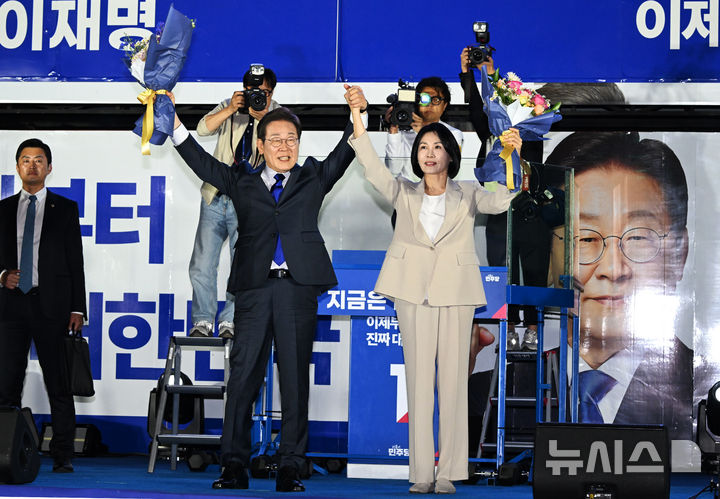 市民に手を振る李在明大統領と金恵京夫人 /ソウル(3/10)