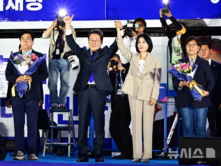 市民に手を振る李在明大統領と金恵京夫人 /ソウル(4/10)