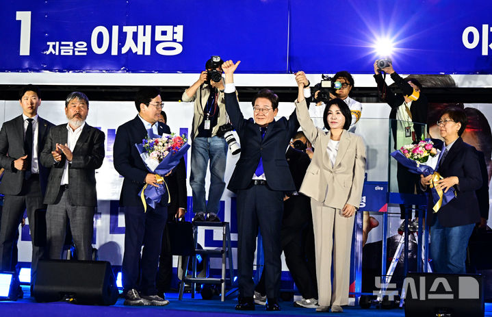 市民に手を振る李在明大統領と金恵京夫人 /ソウル(5/10)