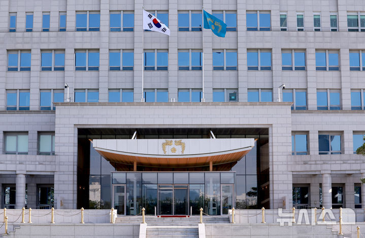 鳳凰旗が掲げられたソウル・竜山の韓国大統領室庁舎(2/7)