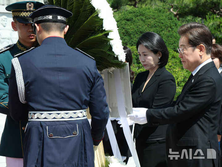 韓国国旗に敬礼する李在明大統領夫妻(4/13)