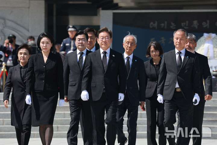 韓国国旗に敬礼する李在明大統領夫妻(8/13)