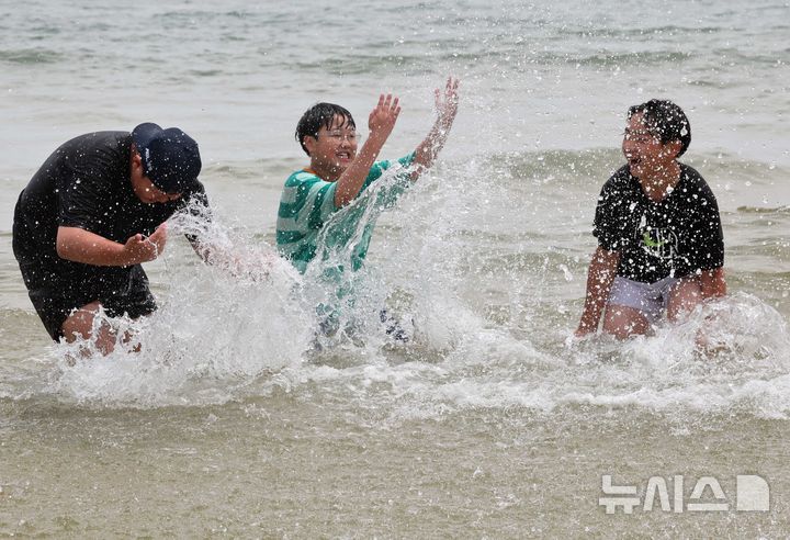 海雲台はもう夏…海に入る子どもたち /釜山(1/6)