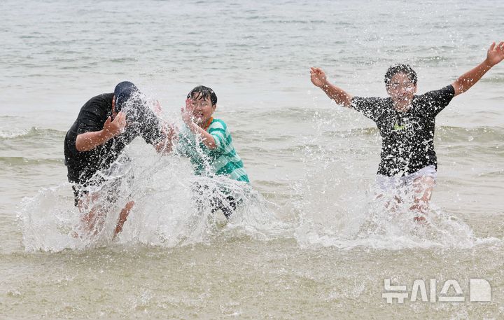 海雲台はもう夏…海に入る子どもたち /釜山(2/6)