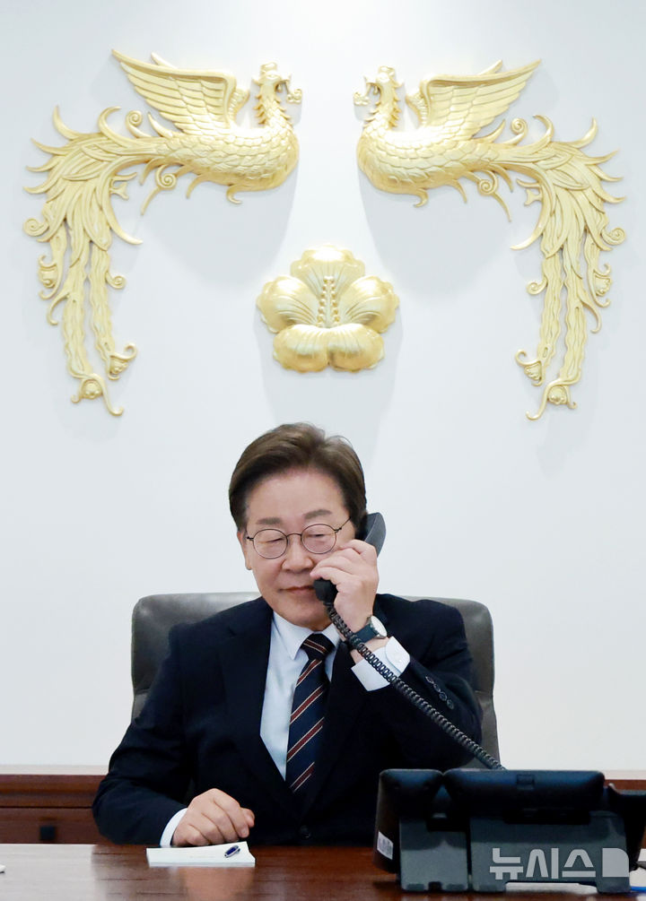 石破茂首相と電話会談を行う李在明大統領(8/10)