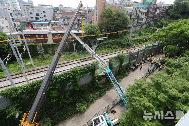 京義・中央線の線路上に倒れたはしご車 /ソウル(5/12)