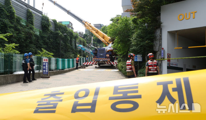 京義・中央線の線路上に倒れたはしご車 /ソウル(8/12)