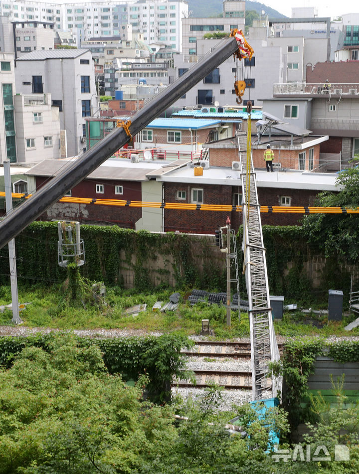 京義・中央線の線路上に倒れたはしご車 /ソウル(9/12)