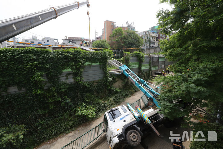 京義・中央線の線路上に倒れたはしご車 /ソウル(10/12)