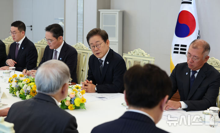 6経済団体との企業家懇談会で発言する李在明大統領(2/8)