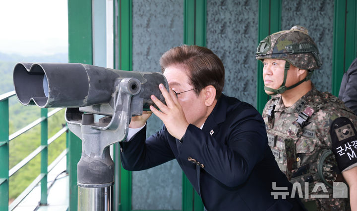 北朝鮮側をじっと見る李在明大統領(5/10)
