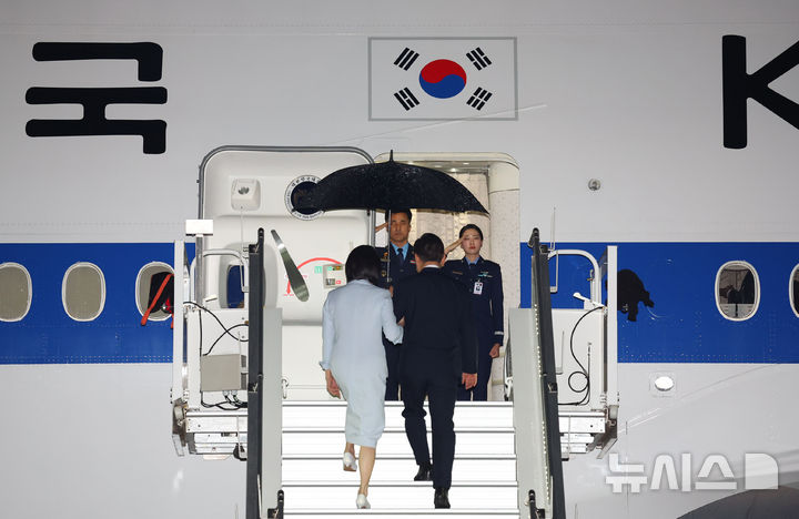 G7首脳会議の日程を終えて韓国に戻る李在明大統領(8/13)