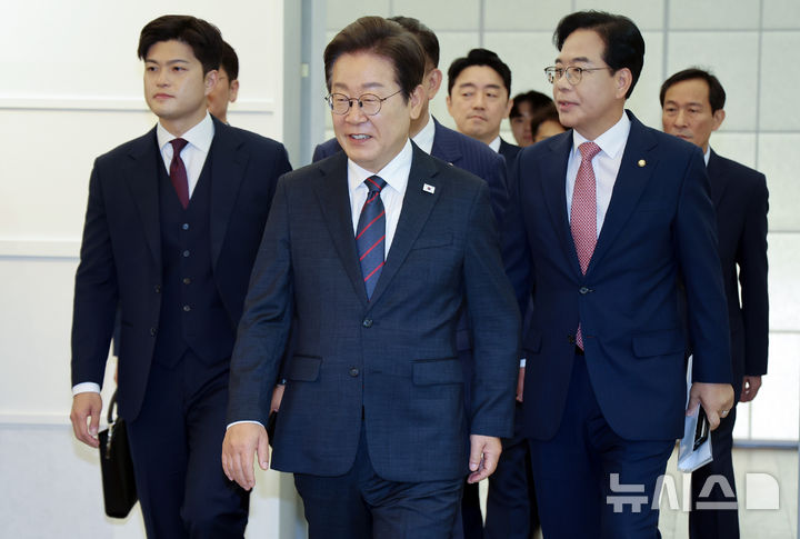 李在明大統領、与野党指導部と手を取り記念撮影(6/10)