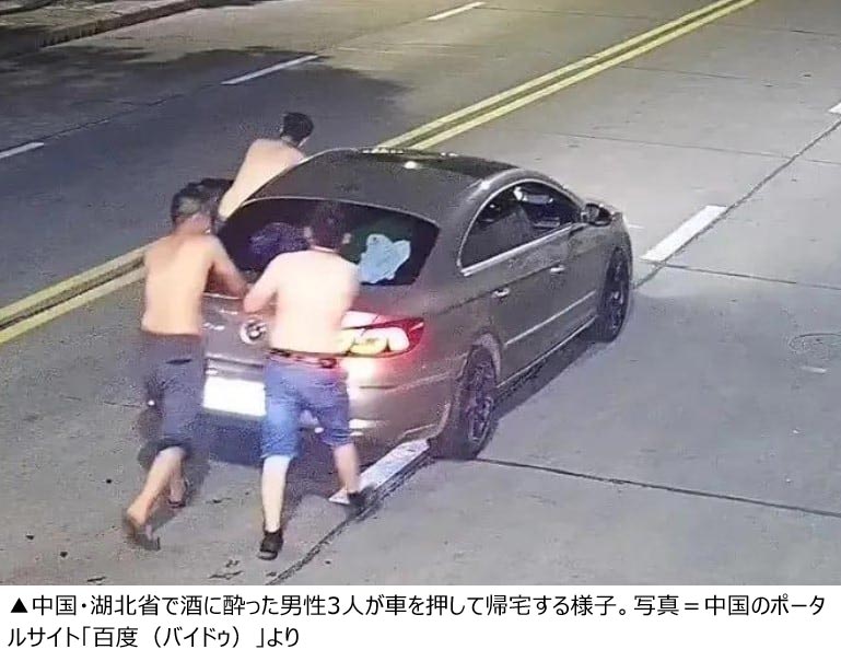 「これ、飲酒運転じゃないでしょ?」 車を押して帰宅した飲酒男性3人組が話題に /中国・湖北省(2/2)