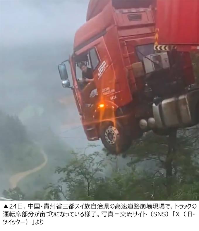 豪雨で高速道路の橋崩落、走行中のトラックが宙づりに /中国・貴州省(2/2)