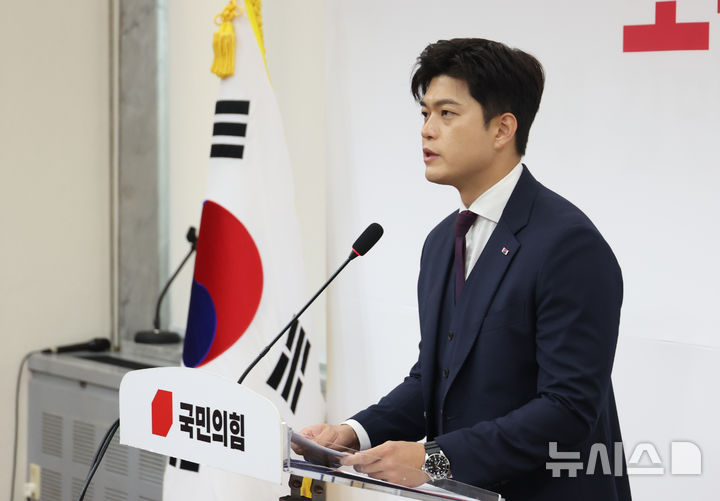 退任記者会見する国民の力・金竜泰非常対策委員長(10/13)