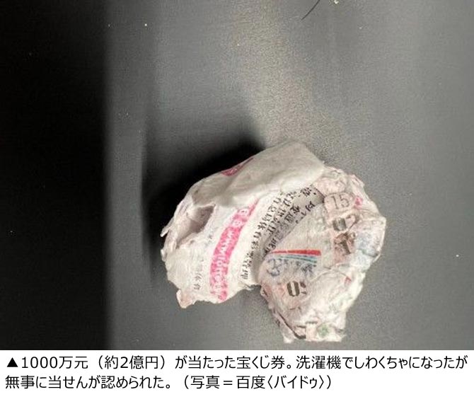 洗濯したズボンのポケットの中にしわくちゃになった宝くじ、2億円当たっていた /中国・雲南省(2/2)
