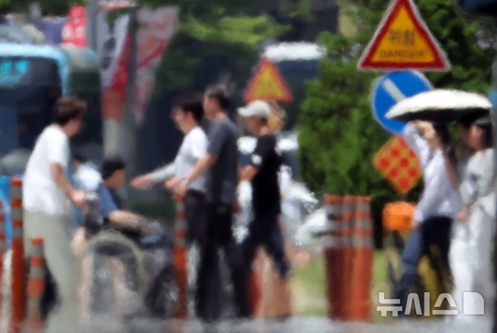 陽炎が立ち上る道路=釜山・海雲台(6/12)