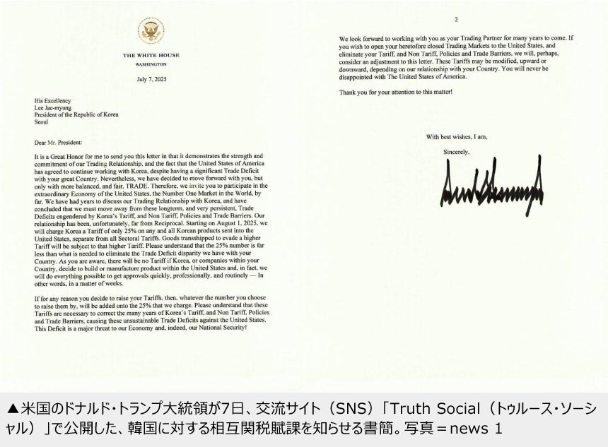 「8月1日から相互関税25%」 トランプ米大統領が李在明大統領に書簡(2/2)