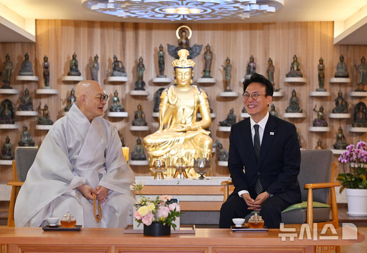 曹渓宗総務院長を表敬訪問した金民錫首相(2/8)