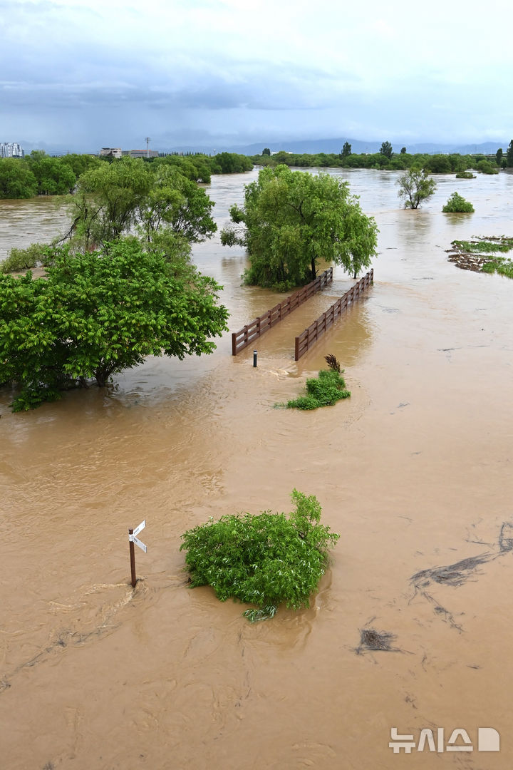 濁流に沈んだ公園の散策路 /平沢(3/8)