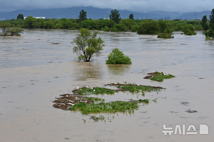 濁流に沈んだ公園の散策路 /平沢(4/8)