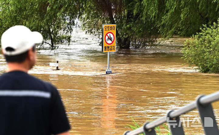 濁流に沈んだ公園の散策路 /平沢(8/8)