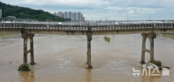 豪雨で破損し、曲がってしまった旧山東橋(3/6)
