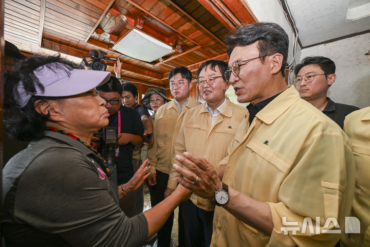 水害被災者に声をかける金民錫首相 /光州(4/6)