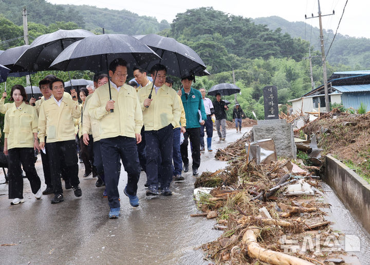 豪雨被害の現場を訪れた李在明大統領=慶尚南道山清(6/12)