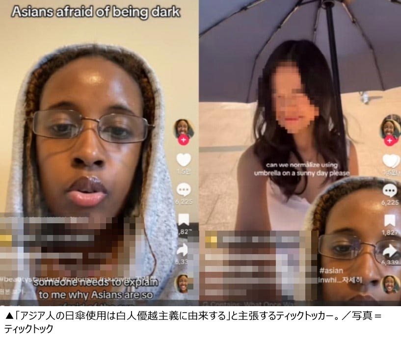 「韓国人が日傘を使うのは白人優越主義だから」 猛暑を乗り切る必須アイテムに噛みつく黒人ティックトッカーが話題に(2/2)